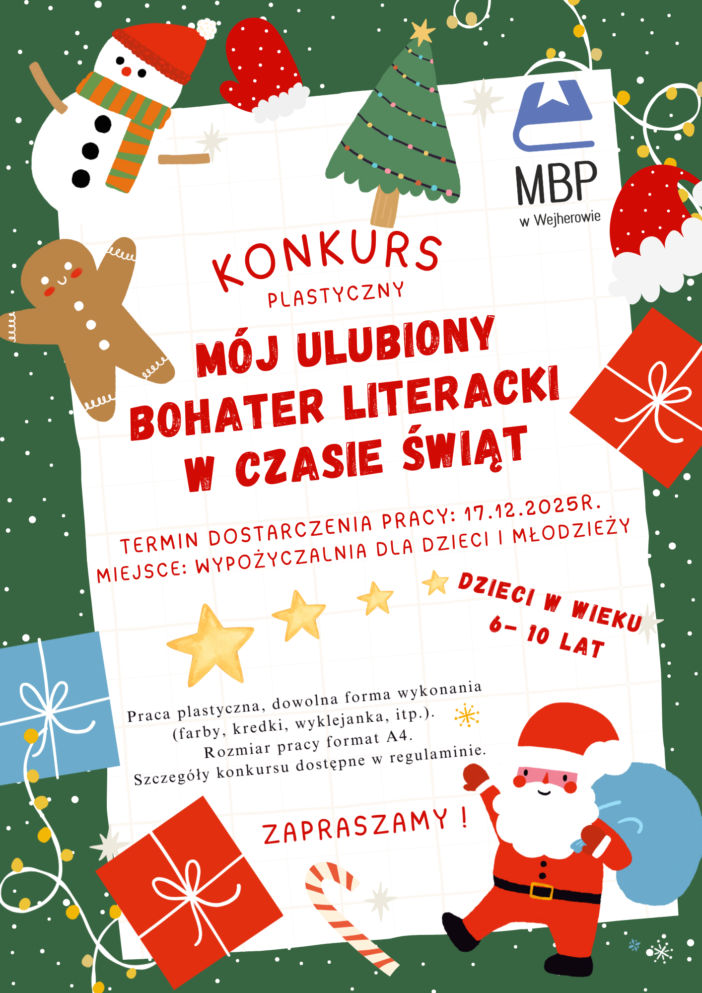 Zapraszamy do udziału w konkursie plastycznym pt. "Mój ulubiony bohater literacki w czasie świąt" 🎄