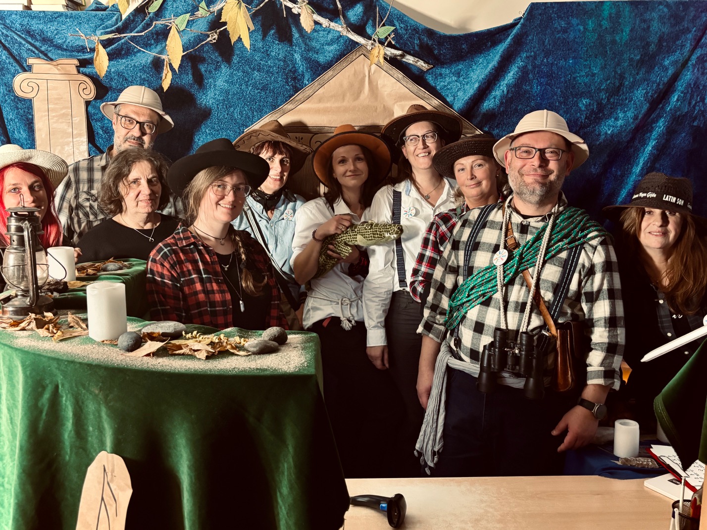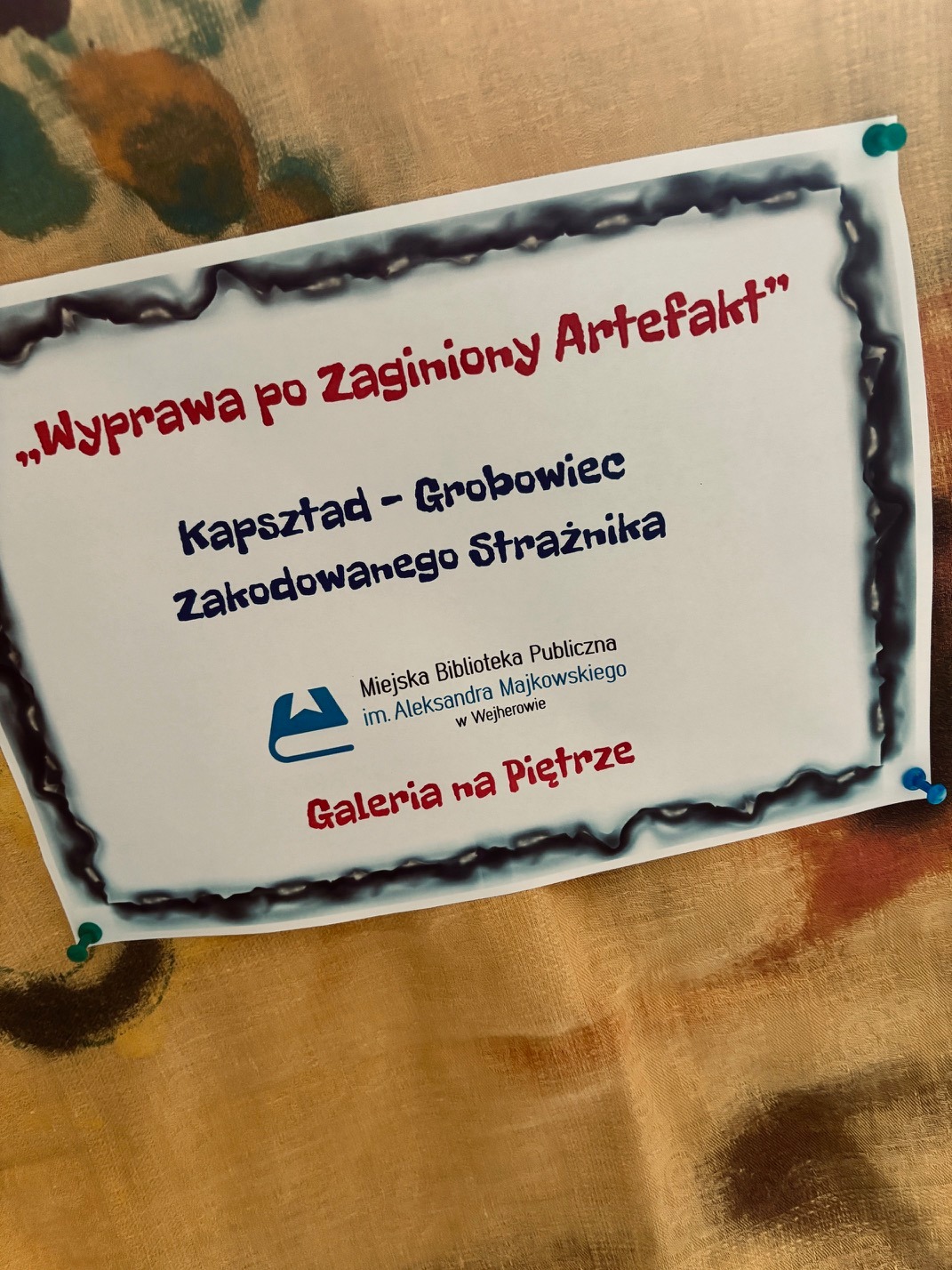 🔍 Głównym punktem programu była przygodowa gra terenowa „Wyprawa po zaginiony artefakt”, rozgrywająca się w zakamarkach biblioteki. Uczestnicy musieli wykazać się sprytem, zręcznością, a przede wszystkim... bystrością umysłu! Gra inspirowana była klimatem filmów przygodowych i dostarczyła wielu emocji – zarówno dzieciom, jak i dorosłym.