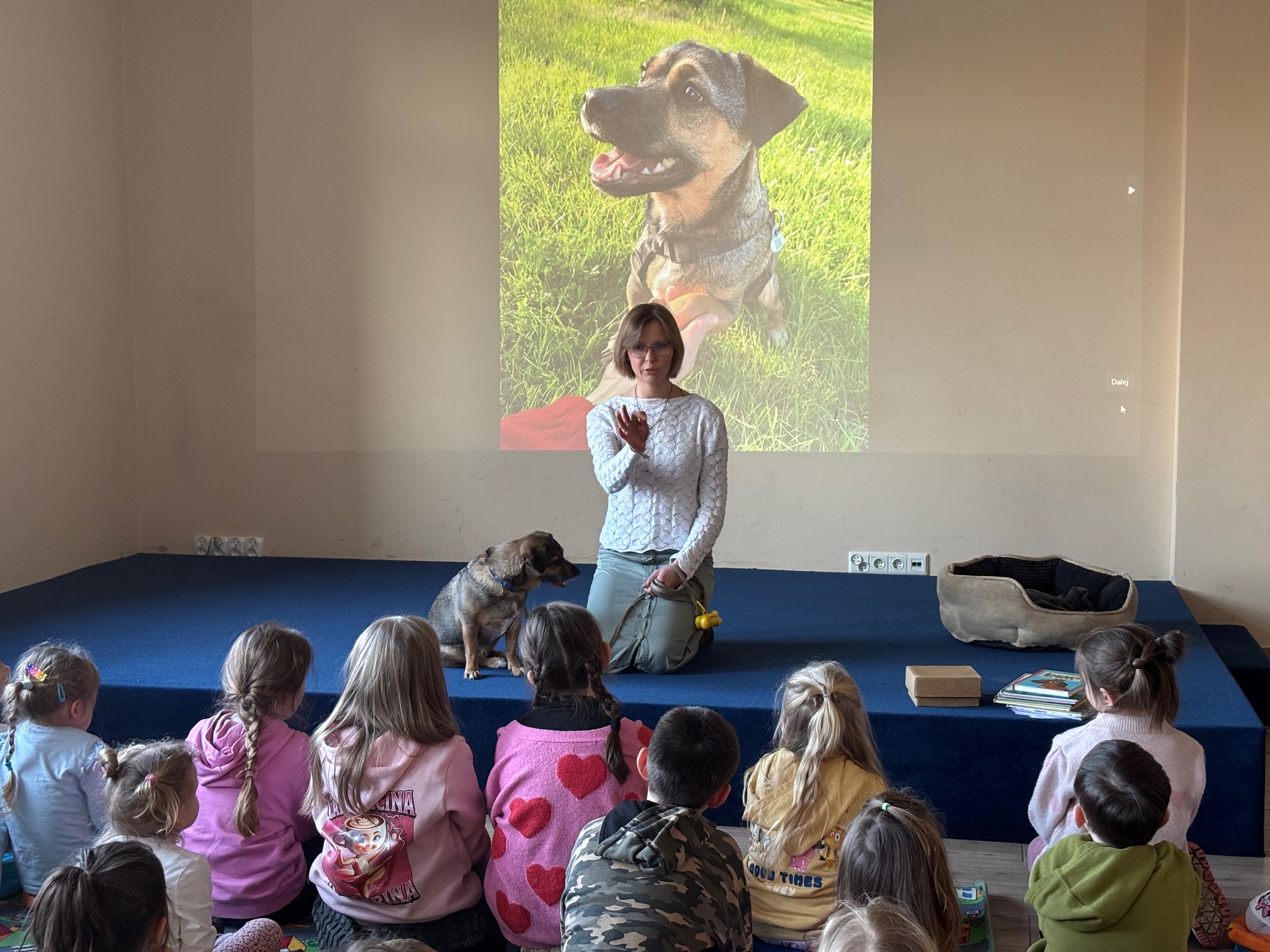 W piątek (27.02) odbyły się warsztaty wokół książki pt. "Precel i rodzinne spotkania", na który zaprosiliśmy najmłodszych czytelników. Dzieci miały okazję spotkać się z Martą Maj, autorką serii o przygodach psa Precla. Pisarka przedstawiła i przeczytała fragment swojej niedawno wydanej książki. Odbyła się też zabawa ruchowa oraz gra na nowych kartach "Psich emocji". Największą atrakcją spotkania była obecność samego bohatera książeczek - psa Precla. Autorka przedstawiła pokrótce zwierzaczka oraz opowiedziała również różne ciekawostki odnośnie zachowań, emocji psów. Być może opowieści te zachęciły dzieci i rodziców do posiadania futrzastych milusińskich w swoich domach. Pewne jest to, że pies Precel - bohater książek, zaskarbił sympatię uczestników. Dziękujemy za mile spędzony czas. Zapraszamy na inne, zbliżające się warsztaty w bibliotece.