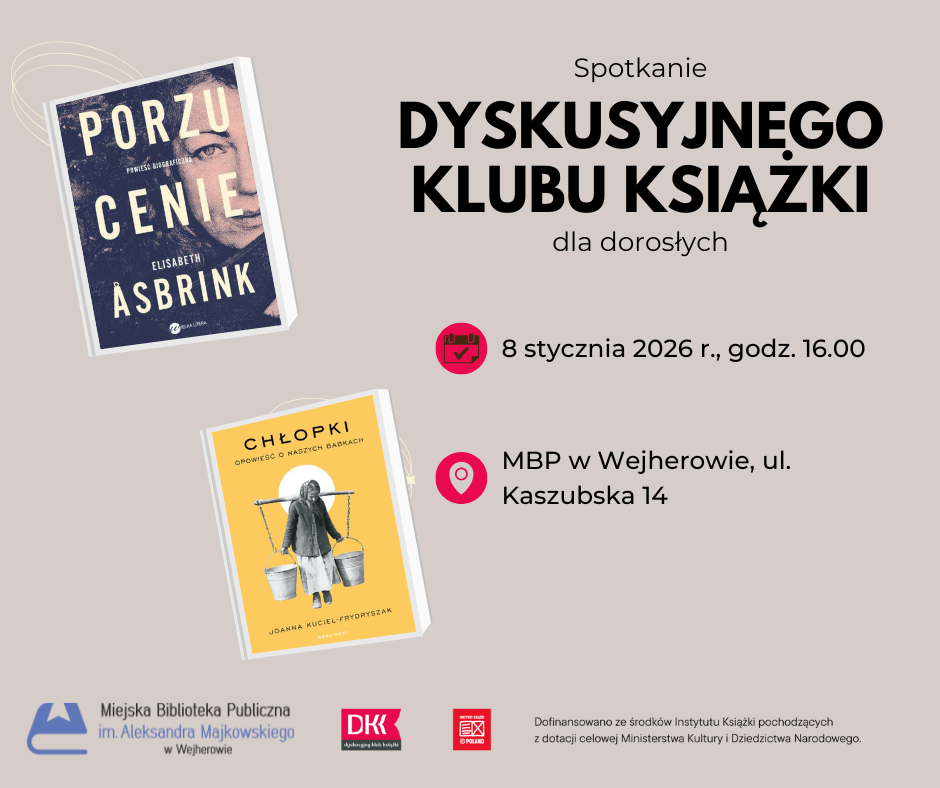 Dyskusyjny Klub Książki dla Dorosłych zaprasza na spotkanie, które odbędzie się 8 stycznia o godz. 16. 00.