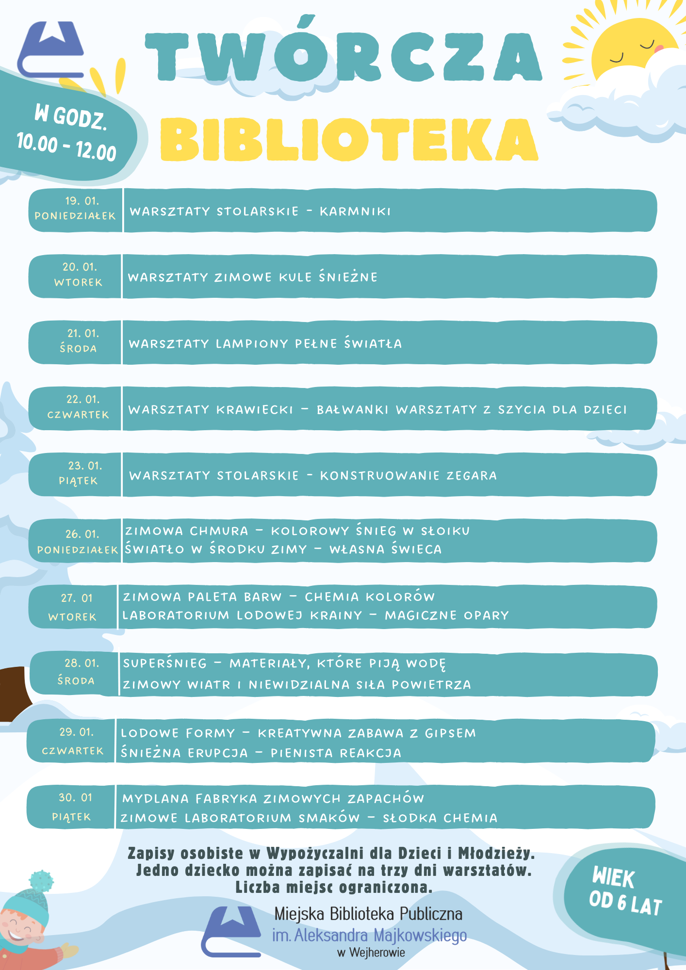 Twórcza Biblioteka Już jutro, 9 stycznia o godz. 10.00, rozpoczynamy zapisy na nasze zajęcia pod hasłem „Twórcza Biblioteka” Zapisy osobiste w Wypożyczalni dla...